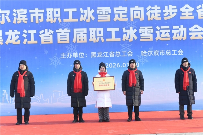 1月10日上午,由黑龙江省总工会、哈尔滨市总工会联合主办的“冰城职工行”哈尔滨市职工冰雪定向徒步全省邀请赛暨黑龙江省首届职工冰雪运动会颁奖仪式,在太阳岛风景区太阳石广场火热启幕。